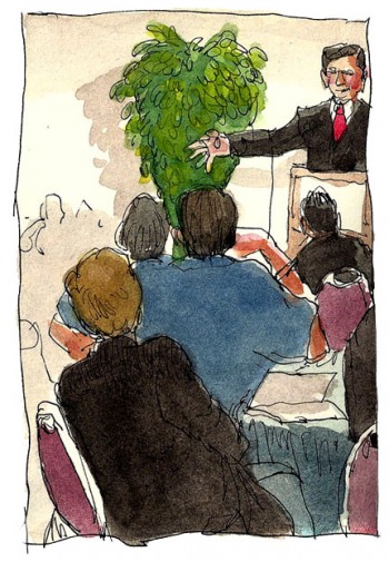 This was at a local government meeting here recognizing volunteers to help keep the city clean. I looked up and thought it was an interesting composition with the people leaning this way and that way and the ficas tree in the middle.