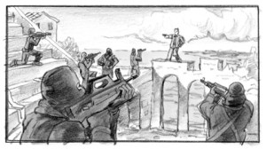 I’m a storyboard artist and motion picture production illustrator living and working in the Los Angeles / Hollywood area, specializing in traditional hand-drawn storyboards for live-action and animated feature films as well as After Effects and CG animatics for pre-visualization and post production visual effects (VFX). I also draw and sketch a lot and upload it to the Sketchblog here and social media – just for fun!