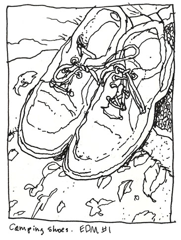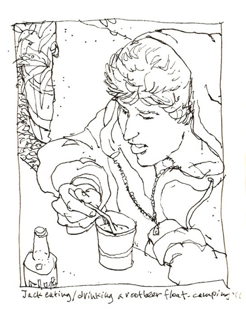 This is from the inside of the local pub. They have an amazing selection of beers, and always something really interesting and amazing on tap (for me that means hoppy). It’s fun going to the same campsite every year for 13 or more years now. We’ve gotten to know a few of the locals pretty well. This is our friend Tracy’s dog. He’s the local tree man and an amazing musician. As I drew this another local – a man a few years older than me – came around to see what I was doing. Turns out he, like me, was an Art Center graduate (he from the mid-1960s, me from the mid-1980s). It was fun to talk to him about storyboarding and the advertising business. He’s retired now and living in beautiful Big Sur!