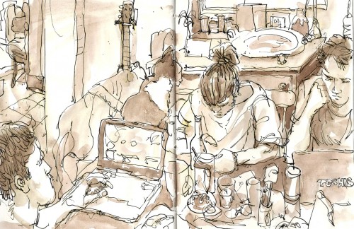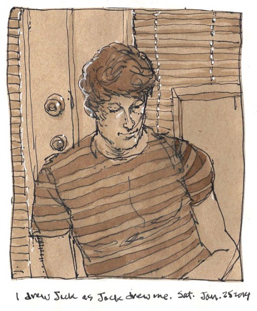 Last night my son came by my studio / man-cave (as my wife calls it) and asked if he could draw me. So I took the opportunity of drawing him as he did that. Just for fun I looked back on this blog to see how many times I’ve drawn him drawing – here’s the result: here in 2010, here in 2009, here in 2008, here in 2007, here in 2006 (although that sketch is actually from 2002, I just posted it in 2006) and here in 2005. It’s funny to see him growing up in the sketches! That guy loves to draw.