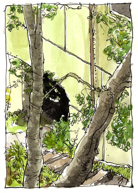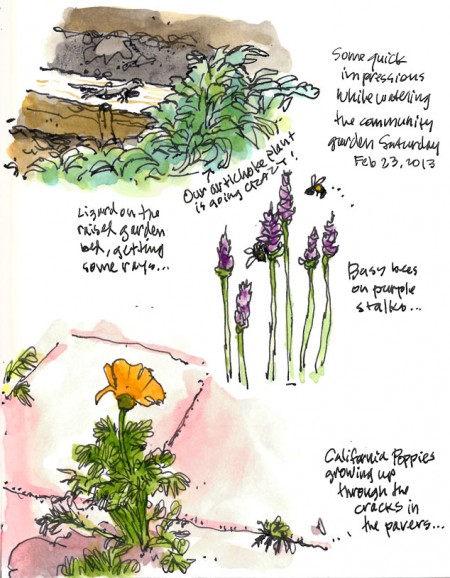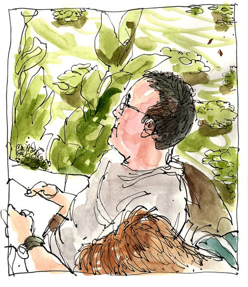 Having fun with a simple ball point pen and some watercolor washes. There’s something fun about the humble Bic medium point – the ink is waterproof and the pen is so familiar that I can concentrate on drawing and not have to think about the pen. I think I started using one of these in third grade. My son introduced me to the Uniball Signo white ink pen – also a lot of fun.